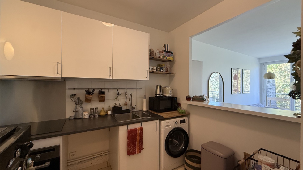 Vaucresson, proche centre ville et gare SNCF ligne L (26 A rue des Fonds Huguenots). Situé au 1er étage avec ascenseur d'une résidence de standing, très agréable 2 pièces de 44m² avec vaste balcon (10.85m²) sans vis-à-vis comprenant: entrée avec placards et wc, séjour ouvrant sur l'extérieur, chambre avec placards donnant également sur balcon, cuisine semi-américaine, salle de bains. Une cave et un parking sous-sol agrémentent l'ensemble. Environnement calme et très verdoyant. Honoraires: 660 euros (visite+rédaction des baux+état des lieux) / Dépôt de garantie: 1152 euros.
