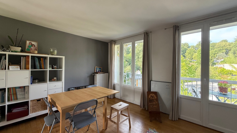 Meudon Bellevue (93 route des Gardes), situé dans une résidence en lisière de forêt, au calme et dans la verdure. Appartement 3 pièces MEUBLE de 59m² au 3ème et dernier étage (sans ascenseur) baigné de lumière.. Il comprend: entrée donnant sur un joli séjour exposé plein sud avec accès sur un balcon sans vis-à-vis, une cuisine équipée, 2 chambres dont une grande parentale avec espace de rangement, salle de bains, wc séparé, divers placards. Une cave agrémente l'ensemble. Place de parking extérieure non attribuée. Les écoles, transports et commerces se situent dans un rayon de 12mn à pieds. Honoraires: 885 euros (visite+rédaction des baux+état des lieux) / Dépôt de garantie: 2770 euros.