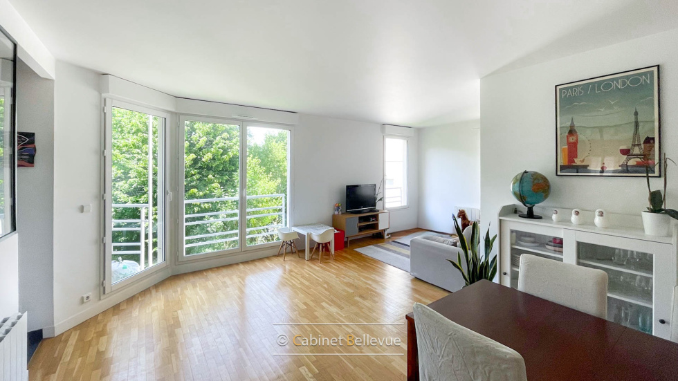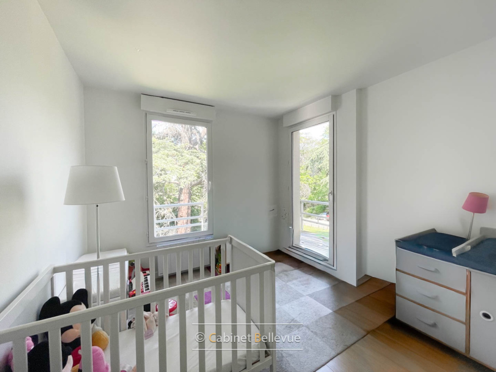 Meudon Bellevue, secteur Bel Air. Dans une résidence de standing datant de 1997 (gros travaux déja éffectués dans la copropriété), en lisière de forêt, appartement familial situé au 2ème étage avec ascenseur. D’une surface de 101 m² habitables, il se compose d’un double séjour ouvrant sur un balcon, avec un accès direct à la cuisine semi-équipée. L’espace nuit comprend 4 chambres avec placards, une salle de bains ainsi qu'une salle d’eau avec espace buanderie, 2 WC. De nombreux rangements complètent l’ensemble. . Une cave et 2 parkings sous-sol agrémentent le bien. Parquet, double vitrage, stores électriques. La résidence dispose d'un accès direct aux bois de Meudon. Les écoles et transports sont à une dizaine de minutes à pied.