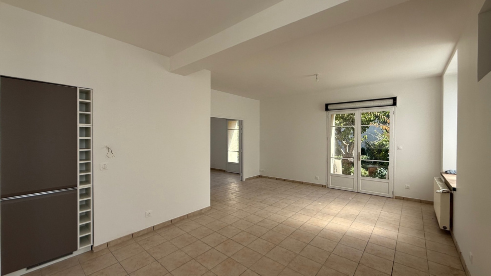 Meudon Bellevue (secteur Potager du Dauphin - rue Valentine). Dans un environnement des plus agréable (calme, verdure), au rez-de-chaussée d'une maison Art Déco datant des années 50 intégralement réhabilité, appartement 3/4 pièces de 100m² habitables. Baigné de lumière, il comprend une entrée desservant un séjour double avec cuisine US, 2 chambres dont une grande suite parentale, 2 salles d'eau et 2 WC. Le chauffage est collectif (très bon DPE : C). L'eau froide et chaude sont individuelles. Les commerces et transports sont dans un rayon de quelques minutes à pied. Honoraires : 1 500 euros (visite - rédaction baux - état des lieux) / Dépôt de garantie : 2 100 euros.