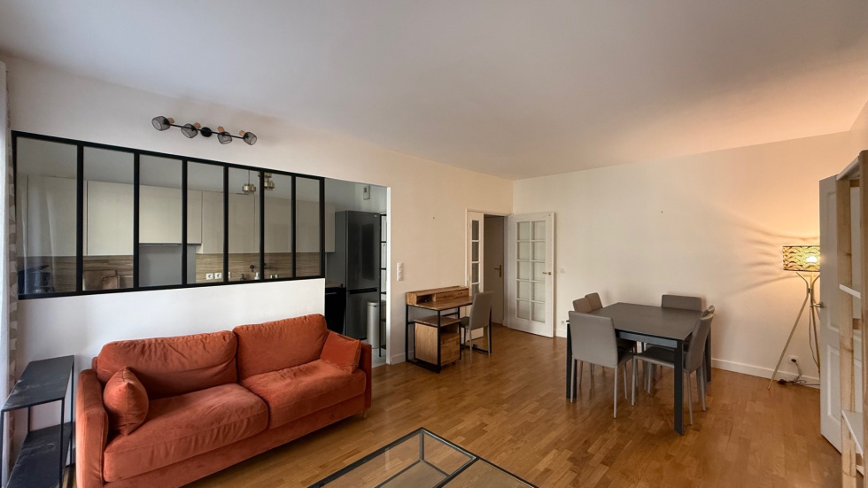 Meudon sur Seine (13 rue de la Verrerie). Situé au sein d'une résidence de standing datant de 2006, au 2ème étage avec ascenseur, appartement meublé de 58m² habitables. En parfait état, il comprend : entrée avec placards, séjour avec cuisine semi-US équipée donnant sur un balcon, une belle chambre, salle de bains et WC séparé. Un parking sous-sol complète l'ensemble. Parquet, double vitrage. Le chauffage est individuel électrique ( très bon DPE à C ). Le tramway T2 et les quais sont à proximité. Honoraires : 870 euros (visite+rédaction des baux+état des lieux) / Dépôt de garantie : 2 740 euros