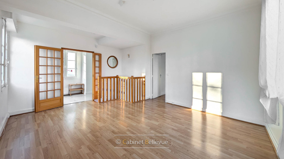 Située entre la gare de Meudon (ligne N) et la station Meudon-sur-Seine (T2), au sein d’une petite impasse privée, maison individuelle non mitoyenne de type R+1 d'une surface de 107 m². Elle se compose : Au rez-de-chaussée : une entrée, un séjour, une cuisine indépendante, deux chambres ainsi qu’une salle de bains avec WC. En rez-de-jardin : deux chambres supplémentaires, une salle d’eau, un WC indépendant, un dressing, une buanderie et un garage. Un jardin d’environ 200 m² entoure la maison.